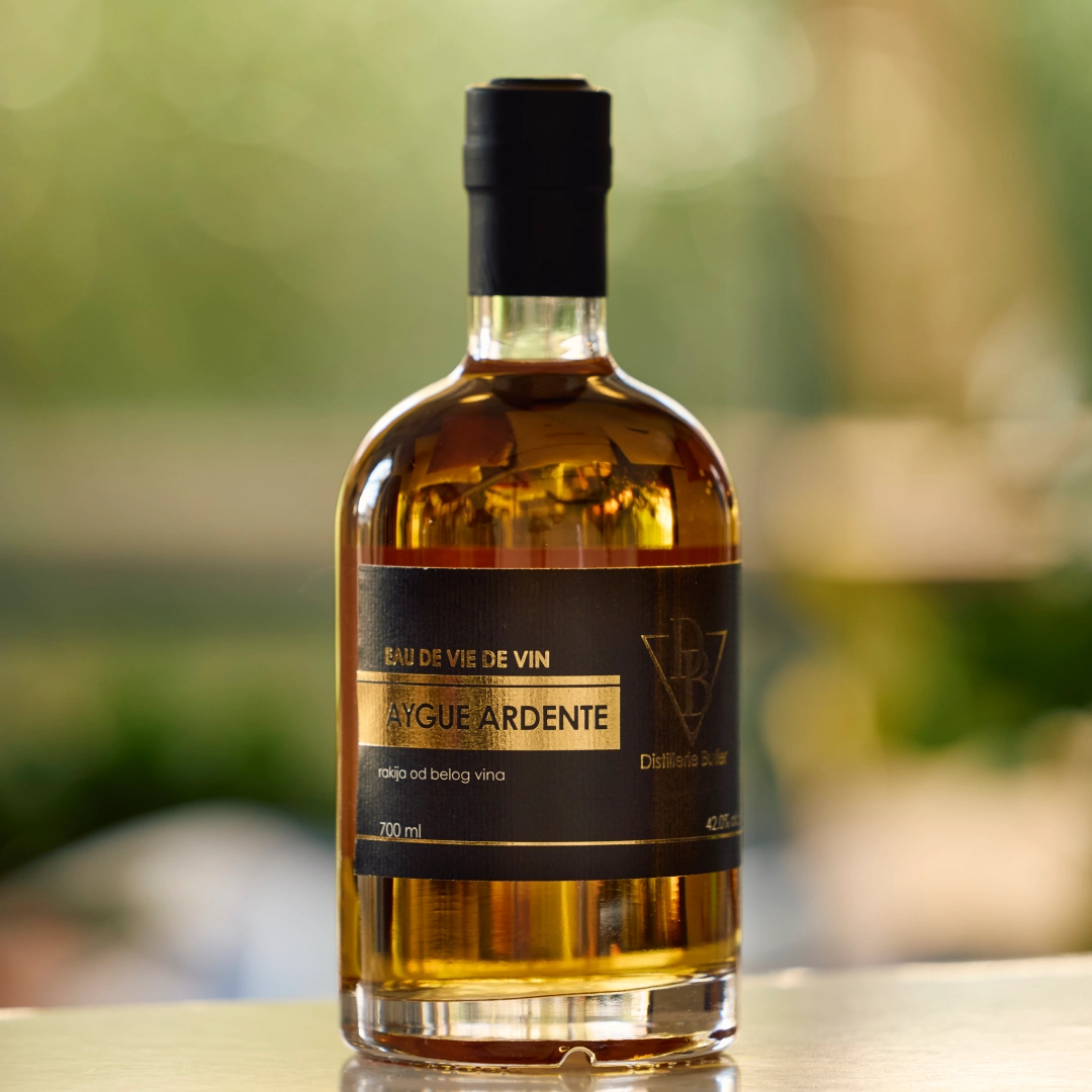 Eau de vie de vin AYGUE ARDENTE, rakija od belog vina, proizvedena je od domaćih sorti vina. Metoda proizvodnje prati princip armanjaka, legendarnog pića za koje se kaže da su ga Francuzi čuvali za sebe, dok su konjak slali u Svet. Odatle i poznata izreka: „Konjak je poznat svima, a armanjak samo najboljima.“
